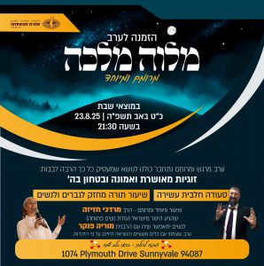 Join us as we extend the holiness of Shabbat with a moving Melava Malka, featuring esteemed guest lecturers from Israel: